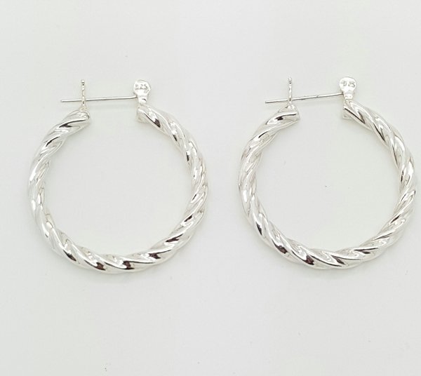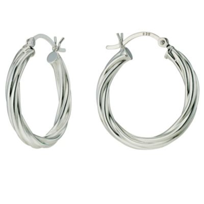 Italian Silver Sterling Satin & Polished Twist Design Hoop ...
